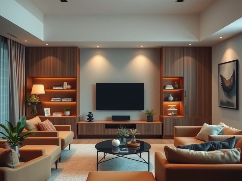 Zabudowa telewizora jako praktyczny sposób na podział i aranżację stref w salonie