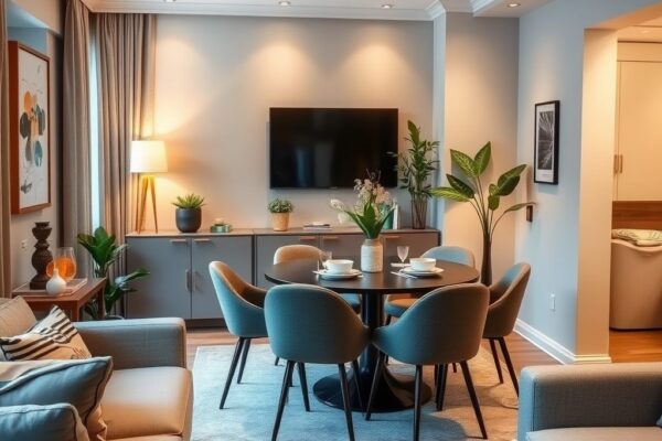 Strefa jadalniana w małym salonie: jak funkcjonalnie wydzielić przestrzeń i wybrać meble