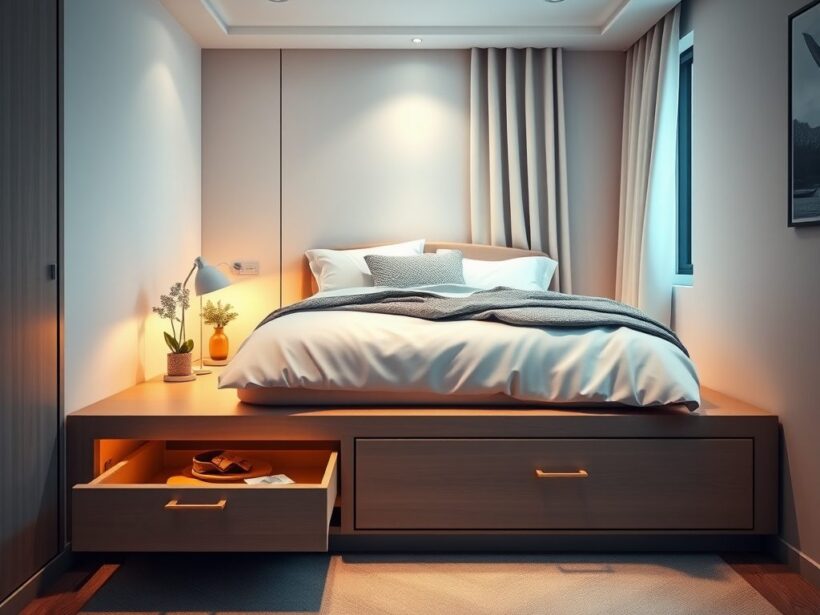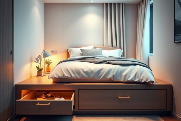 Podest pod łóżko w kawalerce jako sposób na komfortową sypialnię i dodatkowe miejsce do przechowywania